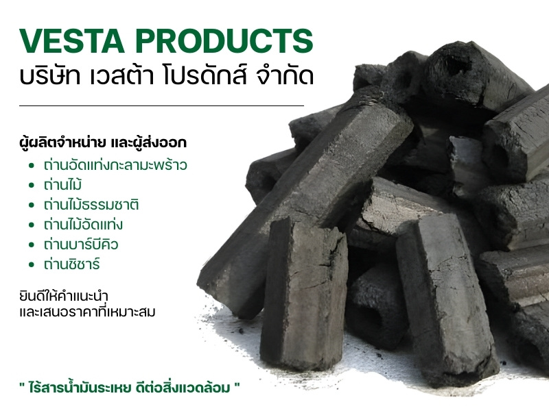 VESTA PRODUCTS CO.,LTD หรือ บริษัท เวสต้า โปรดักส์ จำกัด คือผู้ผลิตและจำหน่ายถ่านอัดแท่ง ถ่านไม้ธรรมชาติ และถ่านกะลาอัดแท่ง ภายใต้แนวคิดการใช้ทรัพยากรอย่างคุ้มค่าและไม่กระทบต่อสิ่งแวดล้อม ด้วยประสบการณ์มากกว่า 10 ปี โรงงานตั้งอยู่ในจังหวัดสมุทรปราการ พร้อมรองรับทั้งตลาดภายในประเทศและต่างประเทศ